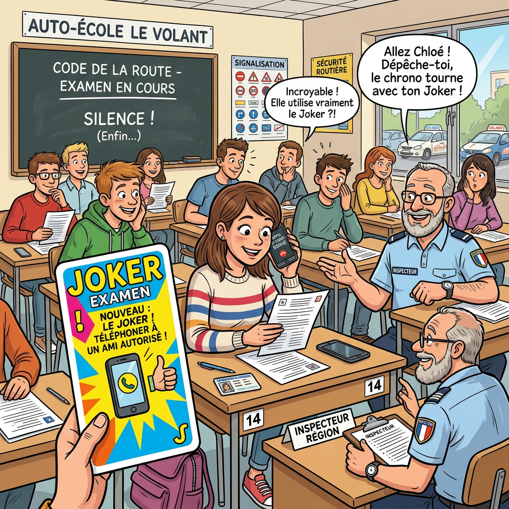 2. Joker d'Appel : Chaque candidat recevra un "joker" qui vous permettra d'appeler un ami pour des conseils durant l'examen. Plus besoin de paniquer si vous oubliez une manœuvre ! Utilisez votre joker à bon escient, car il ne pourra être utilisé qu'une seule fois.